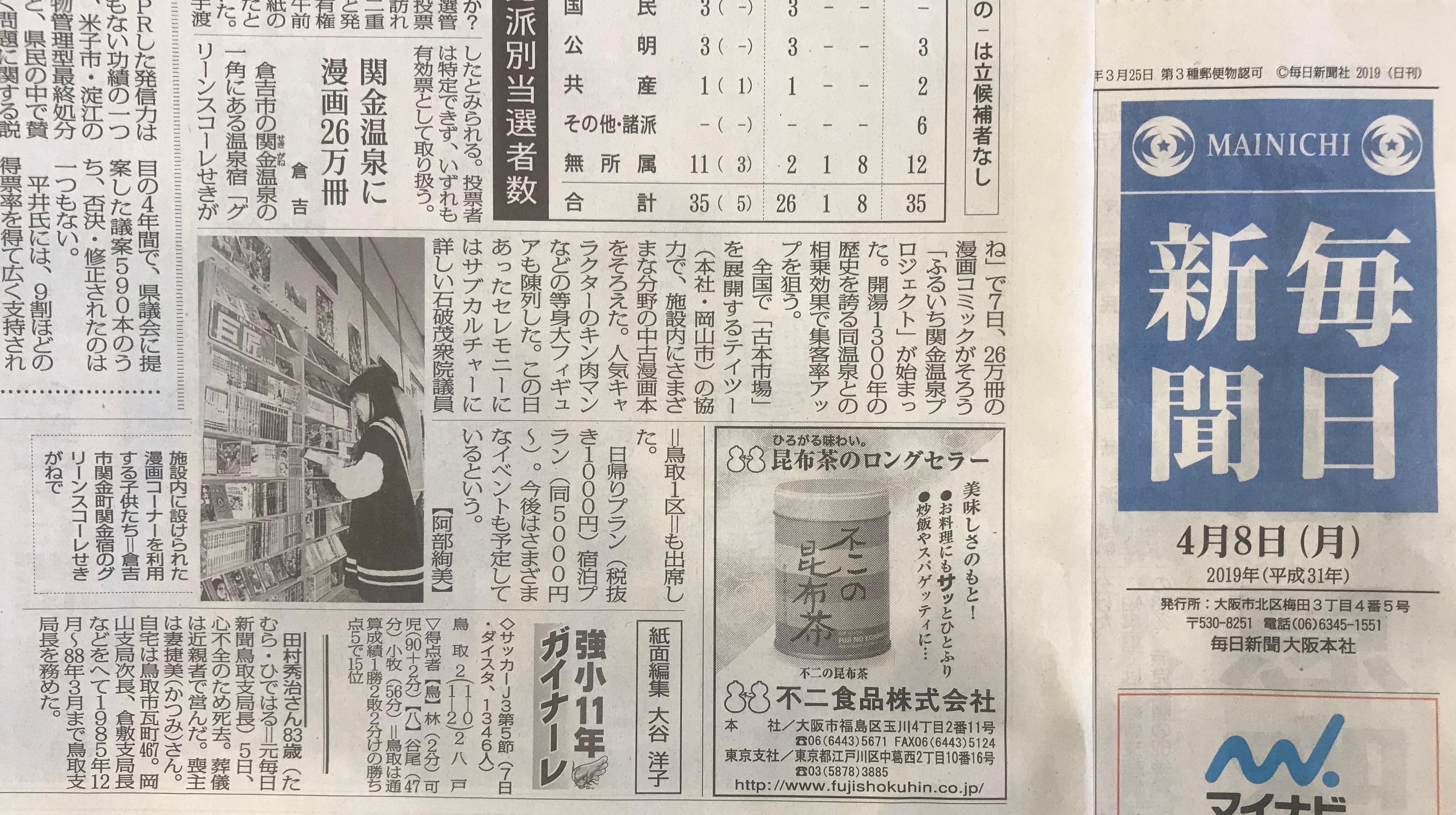 4月8日の毎日新聞(朝刊)に掲載されました!