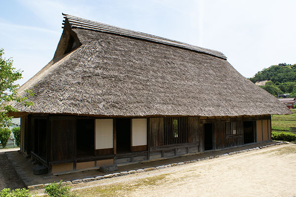 江戸時代に庄家を勤めていた鳥飼家住宅を平成3年に移築。入母屋(いりもや)風茅葺屋根。