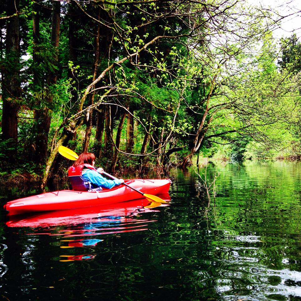 春シーズンには、池も満水に近く、奥の山林を抜ける超レアな体験も出来ます。まさに非日常体験です。