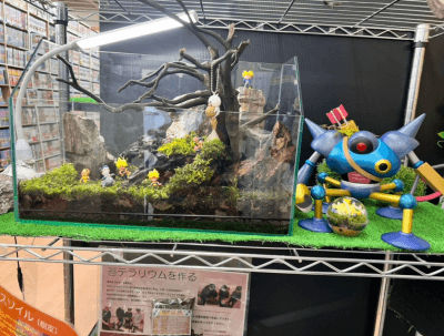 平井店テラリウムコーナーに展示している水槽の作品は毎月メンテナンスをしてくれていますが今回はフィギュアも添えてなかなかの出来栄え(#^.^#)