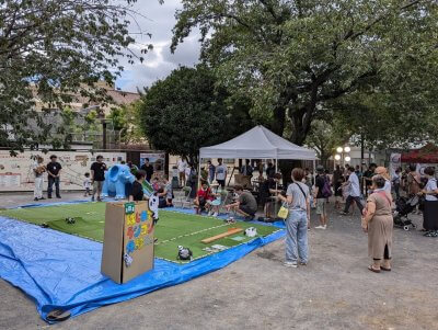 当店ではかき氷・射的・サイコロゲーム・ガチャ抽選・トレカ販売等を出店。