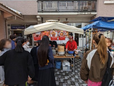 まず、校舎玄関前にはたくさんの魅力的なマルシェがあり、どれもおいしそう🍛
