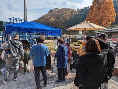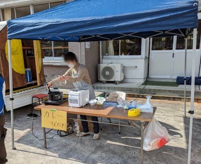 まず、校舎玄関前にはたくさんの魅力的なマルシェがあり、どれもおいしそう🍛