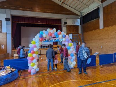 さぁ、我が「ふるいちブース」は今回体育館で!