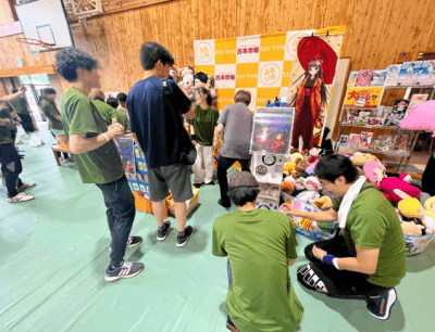 凄すぎます!!両名のコミュニティーの広さを感じながら、わがふるいちブースの役目は、来て頂いた皆様に楽しんで頂く事!体育館の一角をお借りして準備~。