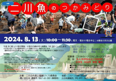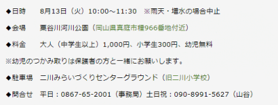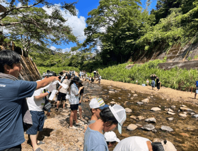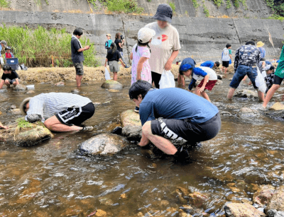 まず午前中は、マンガ館のすぐ下の河川で行なわれました『二川魚のつかみどり』に参加(=゚ω゚)ノ