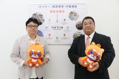 ※写真は当社 藤原社長とSETOUCHI SPARKS 大島代表
