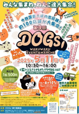 2025年5月11日(日)、岡山県浅口市のふるさとかもがたプラザBIGHATで開催されました『第3回DOGsドッグス』にて出店致しました!