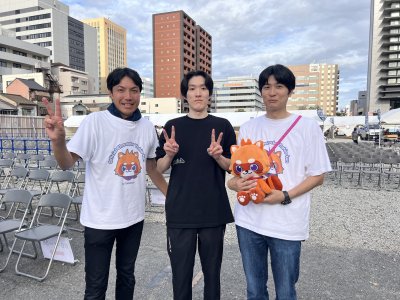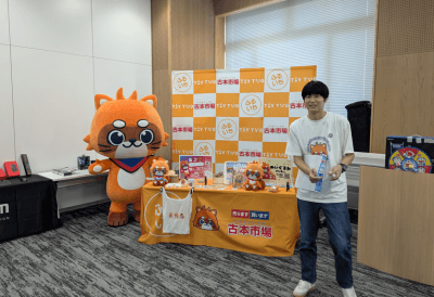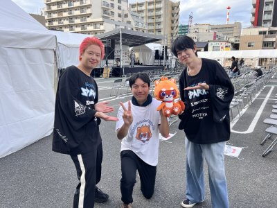 昼過ぎからのファン感謝祭で我がテイツー社は、当社公式キャラクター「よしおくん」のPRを行わせていただきました。簡易ですがなかなか目立つブースが完成♪