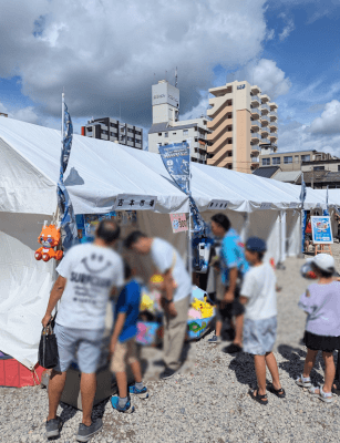 我々は↑画像の後ろにある企業・物販ブース・マルシェブースで、こども達を楽しませるサイコロ投げを実施!そういつものやつです(笑)。