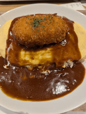杜の街グレースのフードコートにあるポムの樹さんのオムライスにクリームコロッケまで乗せたボリュームたっぷりのごはんを頂きました!