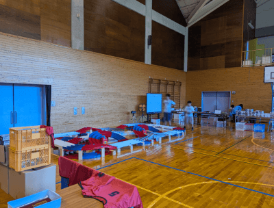 そしてこちらが↓体育館で開催されていたサバイバルゲームとミニ四駆コーナー!